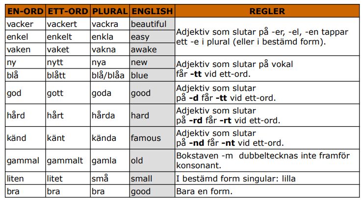 1. Vi kan också böja adjektivet efter en/ett/flera
