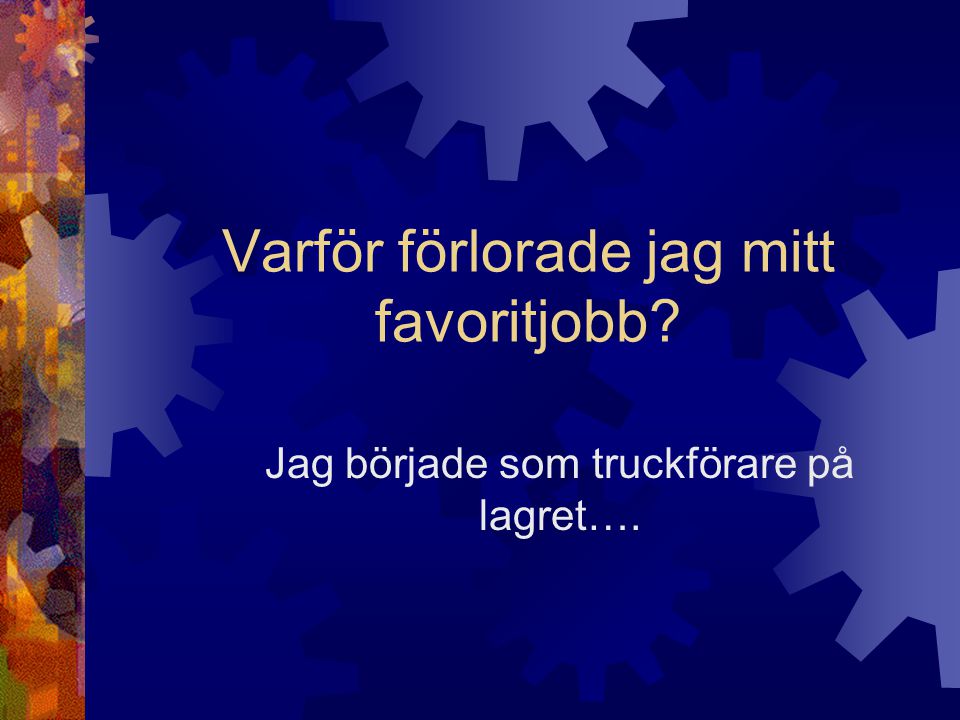 1. Tala Sitt två eller tre personer i varje grupp. Berätta om ditt första job. Mitt första jobb var… Jag jobbade som…. 2.Samtala Viktiga engenskaper på jobbet? punktlig noggrann alltid snäll Träna med film / luyện tập với video tại đây Lycka till ☺ och kom ihåg att du kan skriva till oss på hemsidan eller…