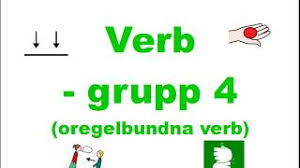 Verben i grupp fyra byter vokal i preteritum och ibland i supinum.Här kommer några vanliga exempel. i – e – i Ex. preteritum och supinum: bita Hunden bet en pojke igår. Den har bitit flera personer. skina Solen sken i helgen. Den har inte skinit på länge. skriva Jag skrev ett brev till mamma i…