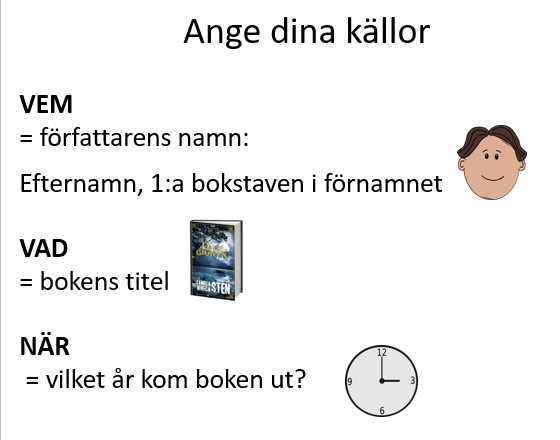 Man ska alltid sträva efter att få med så mycket information som finns när man skriver sina källor i en källförteckning. Hur man skriver kan variera, så man bör hålla sig till det som anges på skolan. En källförteckning har man sist i sitt arbete. Så här kan man skriva källorna i sin källförteckning som…