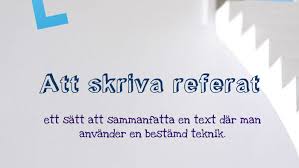 1. Syfte och varför skriver man ett referat? I ett referat ska du sammanfatta huvudpoängen i en text du läst. Referatet ska skrivas med egna ord och kortfattat ta upp det viktigaste från texten. 2. Förberedelse? Innan du börjar skriva ditt referat så ska du välja den text du ska referera, det kan t.ex. vara…