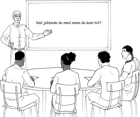 Läsförståelse/ Đọc hiểu : Vad jobbade du med förut? Adam står i klassrummet och pratar med eleverna i klass 2B. De pratar om vad eleverna jobbade med innan de kom till Sverige. Adam: John, vad jobbade du med i ditt förra hemland? John: Jag jobbade som fotograf. Adam: Och du, Leya. Vad jobbade du med…