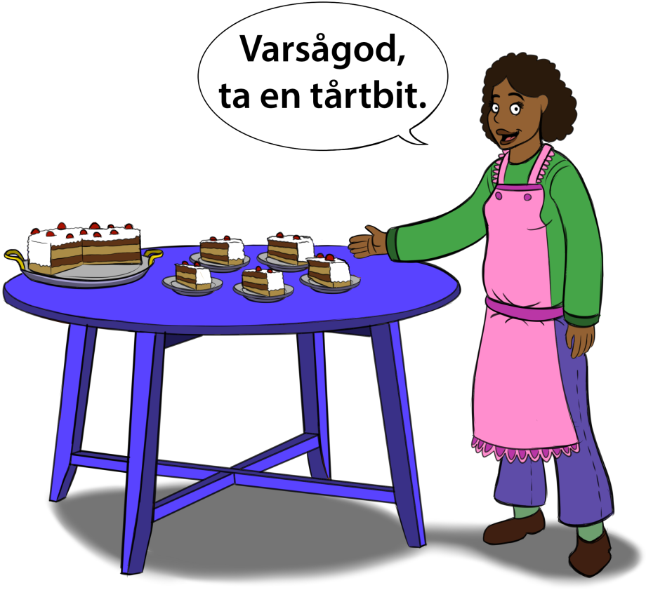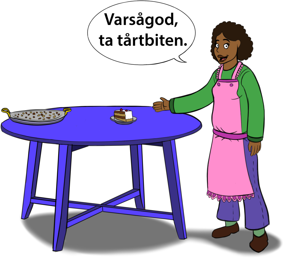 Det finns många tårtbitar. Vi vet inte vilken tårtbit kvinnan menar (= obestämd form)./ Có rất nhiều miếng bánh. Chúng tôi không biết người phụ nữ muốn nói đến miếng bánh nào (= dạng không xác định).
