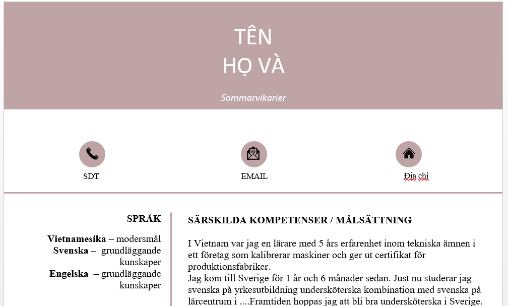 2. Mẫu thư xin việc (Personligt brev), tải file tại đây