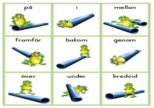 Prepositioner står före substantiv för att förklara plats eller tid./ Giới từ đứng trước danh từ để giải thích địa điểm hoặc thời gian.