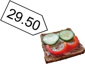 Sju kronor och femtio öre Smörgåsen kostar tjugonio kronor och femtio öre