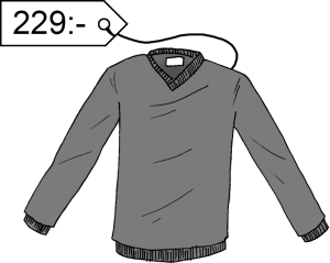 Kaffet kostar trettiosju kronor och nittio öre Tröjan kostar tvåhundratjugonio kronor Den kostar elva och nittiofem.