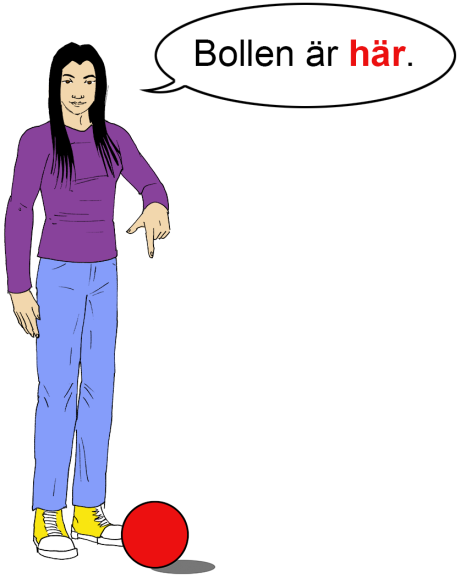 “Där” säger vi när vi pratar om något som är långt borta.                                                 Här är äpplet och där är teven.