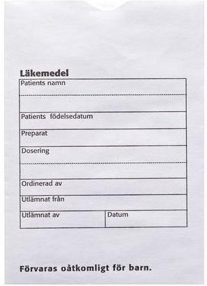 Vissa läkemedel kommer färdigfördelade i små påsar, en förpackning för varje klockslag det ska delas ut, från apotkets doscentrum. Läkemedlen kommer i rullar med påsar för vanligen 2 veckors förbrukning. På varje engångsförpackning t.ex påse, framgår tydligt den boendes namn och personnummer, tidpunkt det ska tas, vilka läkemedel som påsen innehåller, vilken läkare som har ordinerat läkemedlet, och när iordningsställandet har skett.